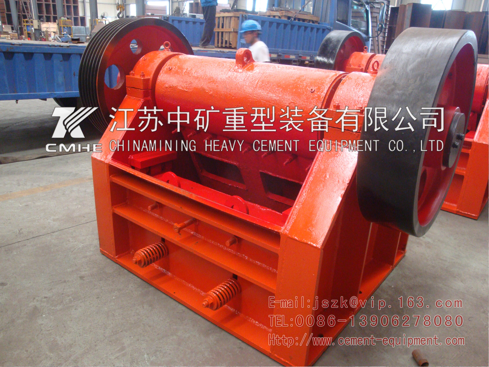 顎式破碎機(jī)稱鄂破,由動鄂和靜顎兩塊顎板組成破碎腔,模擬動物的兩顎運(yùn)動而完成物料破碎作業(yè)的破碎機(jī)。廣泛運(yùn)用于礦山、冶煉、建材、公路、鐵路、水利和化工等行業(yè)中各種礦石與大塊物料的中等粒度破碎。被破碎物料的抗壓強(qiáng)度為320Mpa。顎式破碎機(jī)的工作部分是兩塊顎板,一是固定顎板(定顎),垂直(或上端略外傾)固定在機(jī)體前壁上,另一是活動顎板(動顎),位置傾斜,與固定顎板形成上大下小的破碎腔(工作腔)。活動顎板對著固定顎板做周期性的往復(fù)運(yùn)動,時而分開,時而靠近。分開時,物料進(jìn)入破碎腔,成品從下部卸出;靠近時,使裝在兩塊顎板之間的物料受到擠壓,彎折和劈裂作用而破碎。顎式破碎機(jī)按照活動顎板的擺動方式不同,可以分為簡單擺動式顎式破碎機(jī)(簡擺顎式破碎機(jī)),復(fù)雜擺動式顎式破碎機(jī)(復(fù)擺顎式破碎機(jī))和綜合擺動式顎式破碎機(jī)三種。