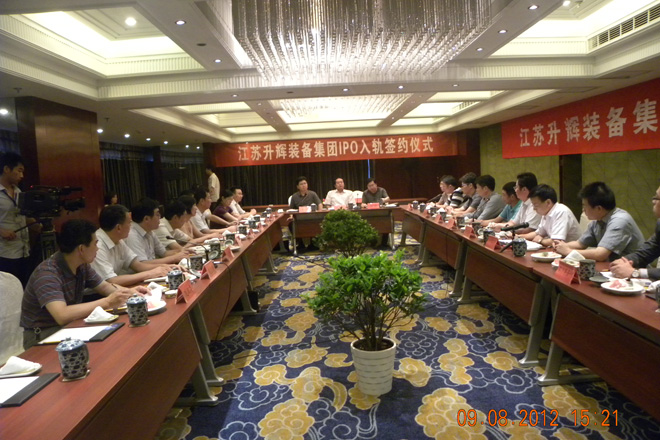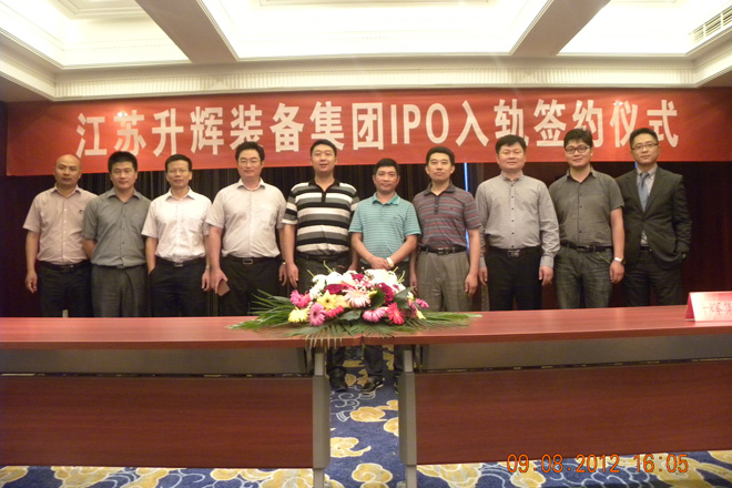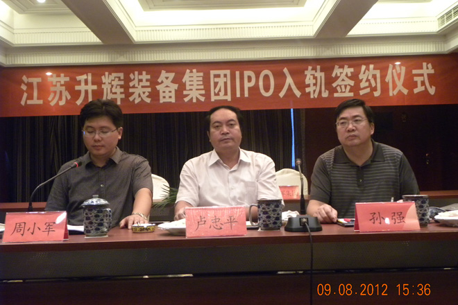 副縣長盧忠平在江蘇升輝裝備集團(tuán)IPO入軌簽約儀式上講了話。他說,升輝集團(tuán)是我縣建材機(jī)械行業(yè)的一家骨干企業(yè),進(jìn)軍資本市場的條件已經(jīng)成熟。他希望升輝集團(tuán)加快推進(jìn)報(bào)會前的各項(xiàng)準(zhǔn)備工作。他同時(shí)要求縣有關(guān)部門切實(shí)做好服務(wù),并預(yù)祝升輝集團(tuán)早日登陸、順利上市。