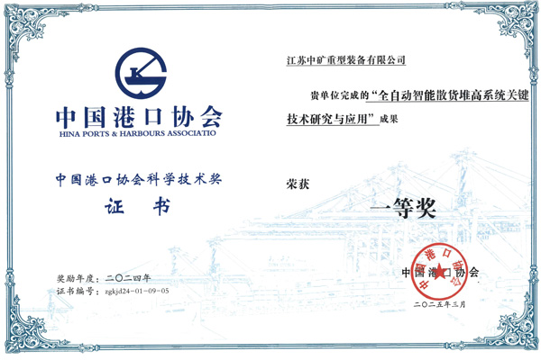 熱烈祝賀我公司“移動(dòng)式堆料裝船一體機(jī)”榮獲中國(guó)港口協(xié)會(huì)科技進(jìn)步獎(jiǎng)一等獎(jiǎng)