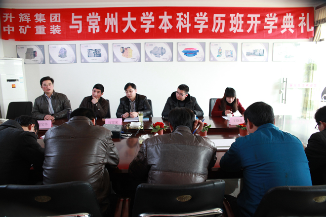 3月3日,江蘇升輝裝備集團股份有限公司與旗下子公司江蘇中礦重型裝備有限公司和常州大學合辦的本科學歷班在升輝集團海安縣總部舉行了2013年度開學典禮,今年招錄學員22人。