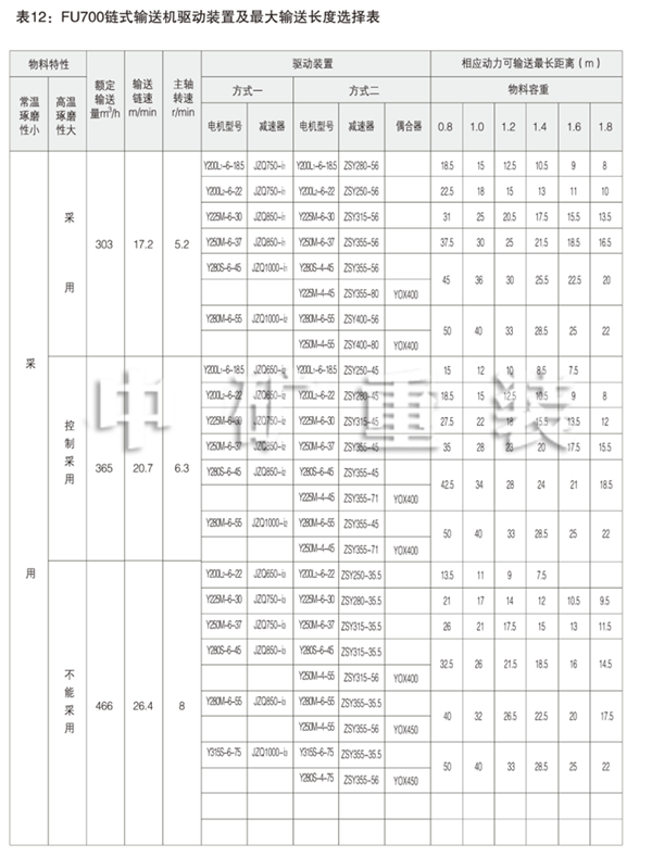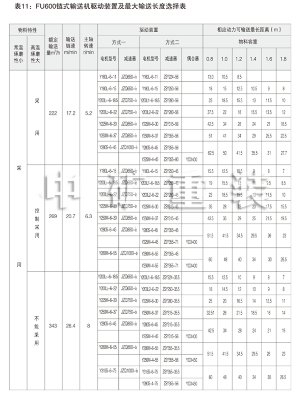 用戶應(yīng)根據(jù)被輸送物料的性能、狀態(tài)(如:磨琢性、料溫、物料粒度)等因素選擇。對(duì)于輸送 水泥生熟原料和成品粉料的適宜鏈速可參照表3。其它與水泥性能和狀態(tài)相近的物料也可參照此表。