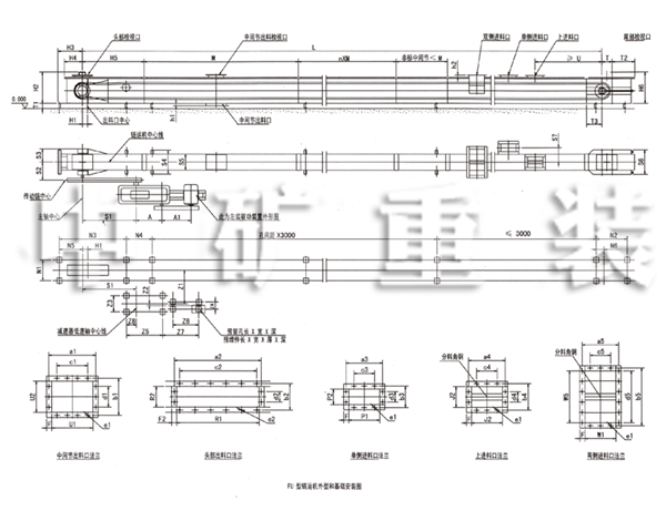 *兩臺(tái)鏈運(yùn)機(jī)上下交叉銜接時(shí),應(yīng)分別采用中間節(jié)底面出料口(有帶閘的和不帶閘的兩種) 和兩側(cè)進(jìn)料口。