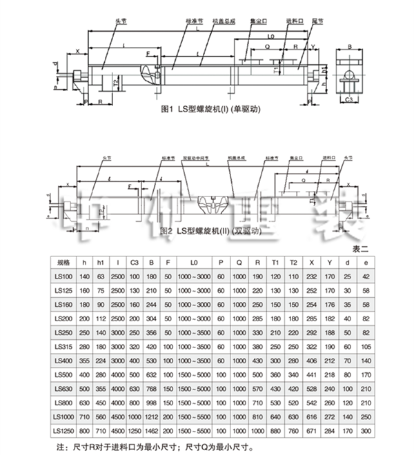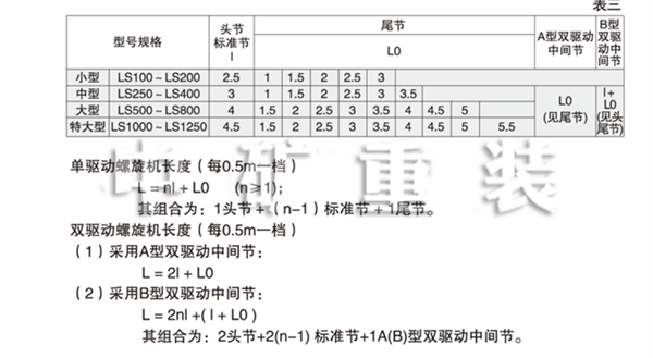 LS型螺旋輸送機(jī)螺旋直徑從200毫米到500毫米,共有五種規(guī)格,長(zhǎng)度從4米到70米,每隔0.5米一檔,選型時(shí)應(yīng)符合標(biāo)準(zhǔn)公稱(chēng)長(zhǎng)度,特殊需要可在選配時(shí)另行提出。