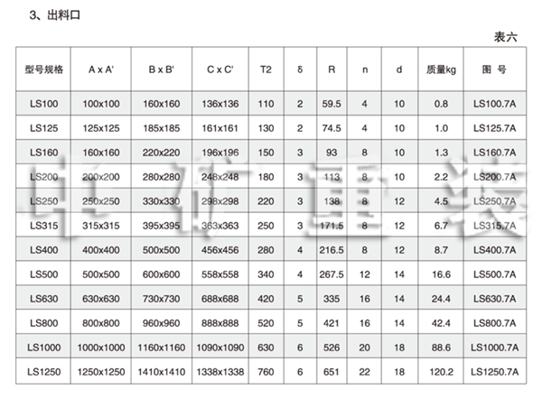 出料口的結(jié)果表示如下圖,系由鋼板折成的方形管及法蘭焊接而成,不帶能關(guān)閉的出料口控制機(jī)構(gòu),在使用時(shí)將出料口焊于機(jī)殼上,其法蘭面與溜槽法蘭相連,裝配出料口的機(jī)殼還應(yīng)按出料口的內(nèi)孔尺寸開(kāi)孔。
