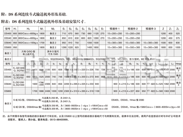 3、DS 640連續(xù)斗式輸送機動力配備表